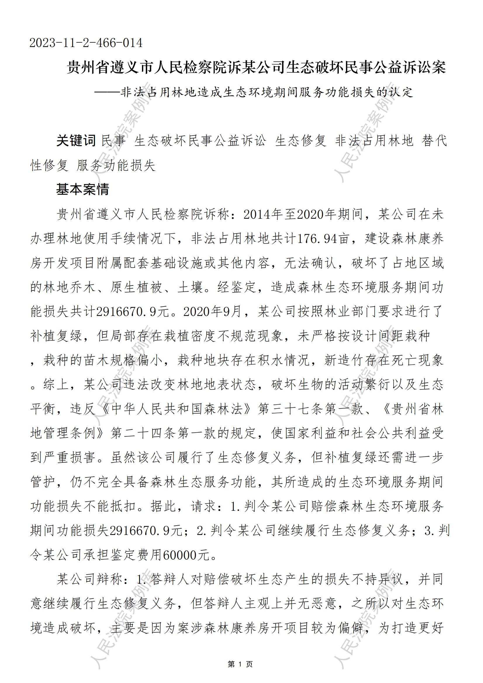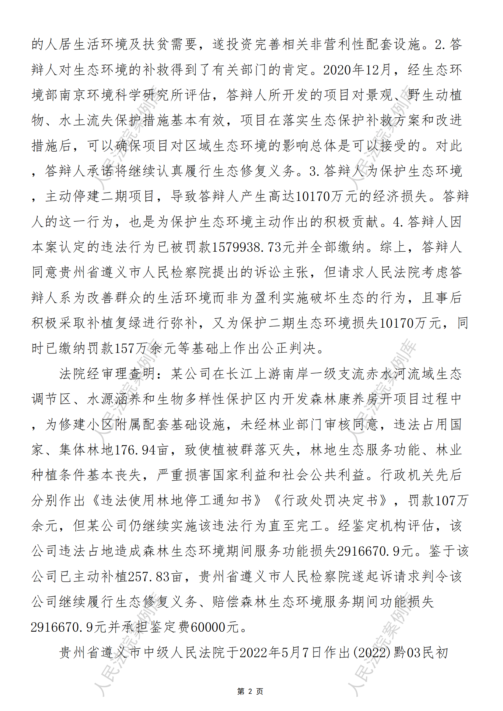 贵州省遵义市人民检察院诉某公司生态破坏民事公益诉讼案