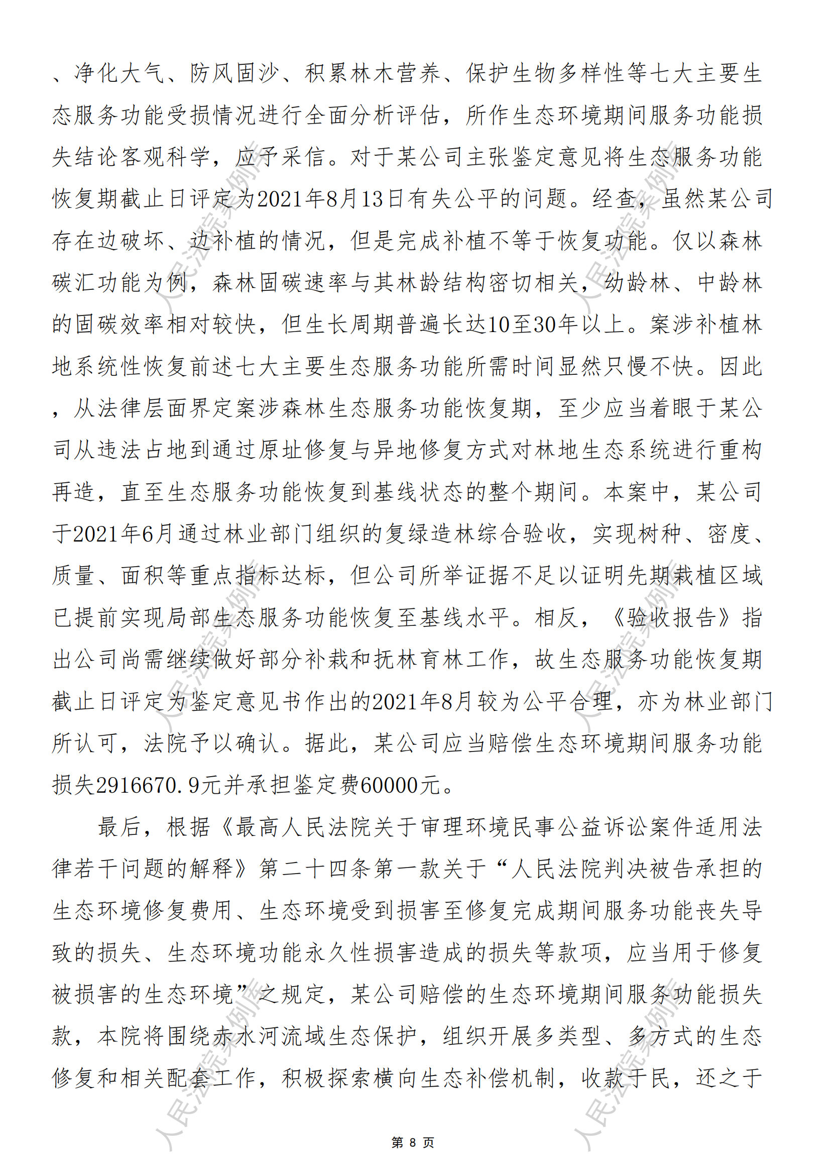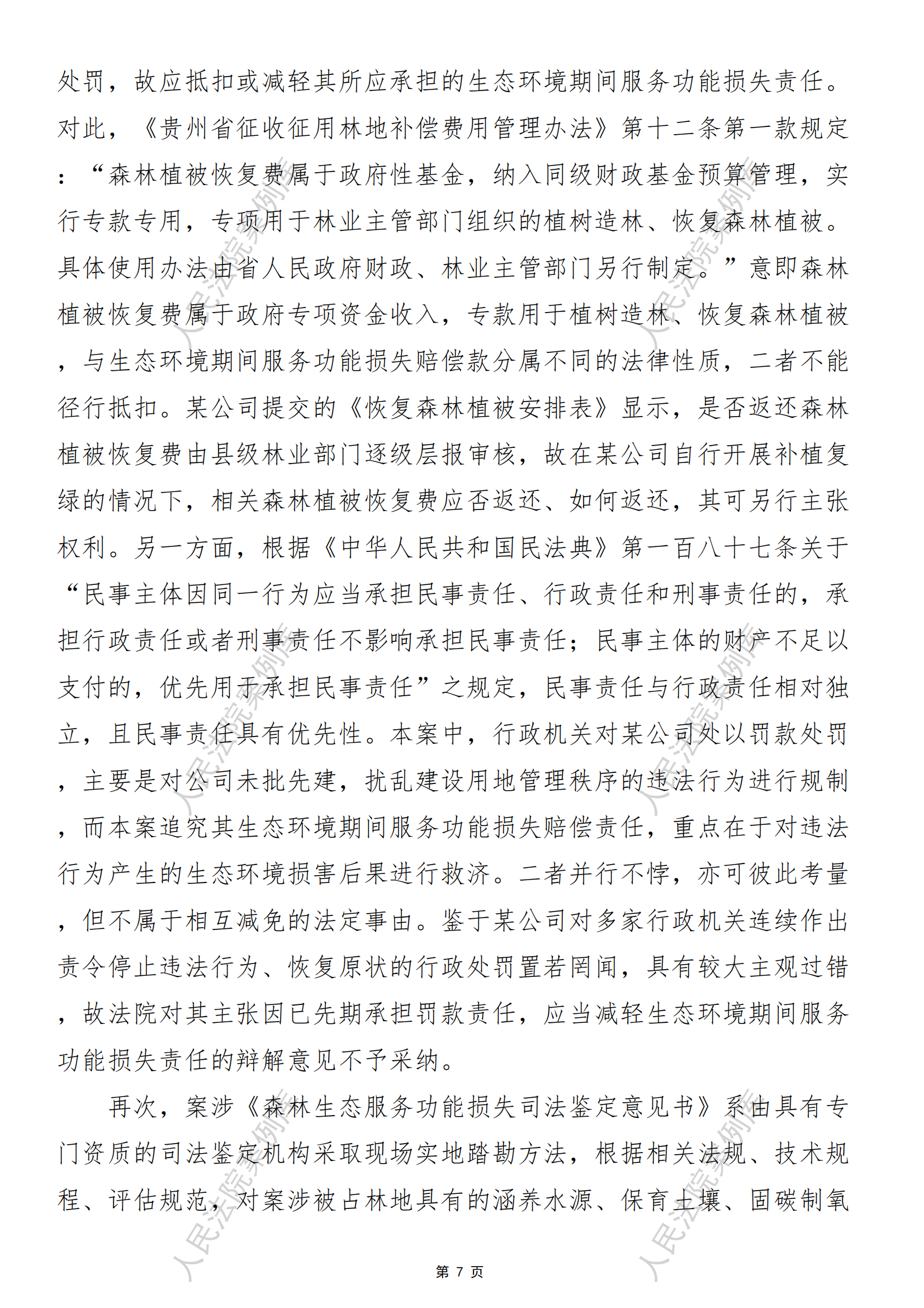 核心提示:——非法占用林地造成生态环境期间服务功能损失的认定