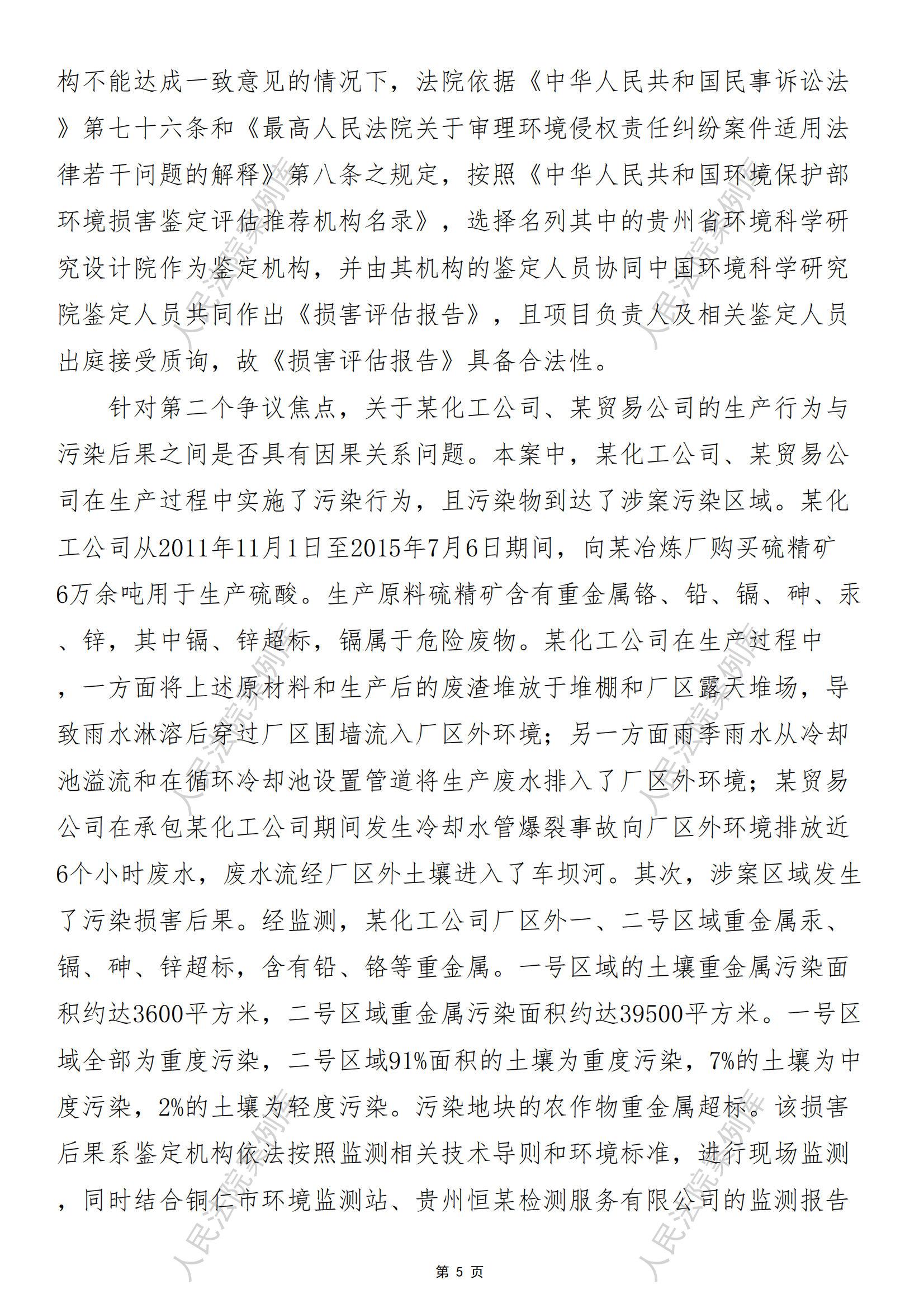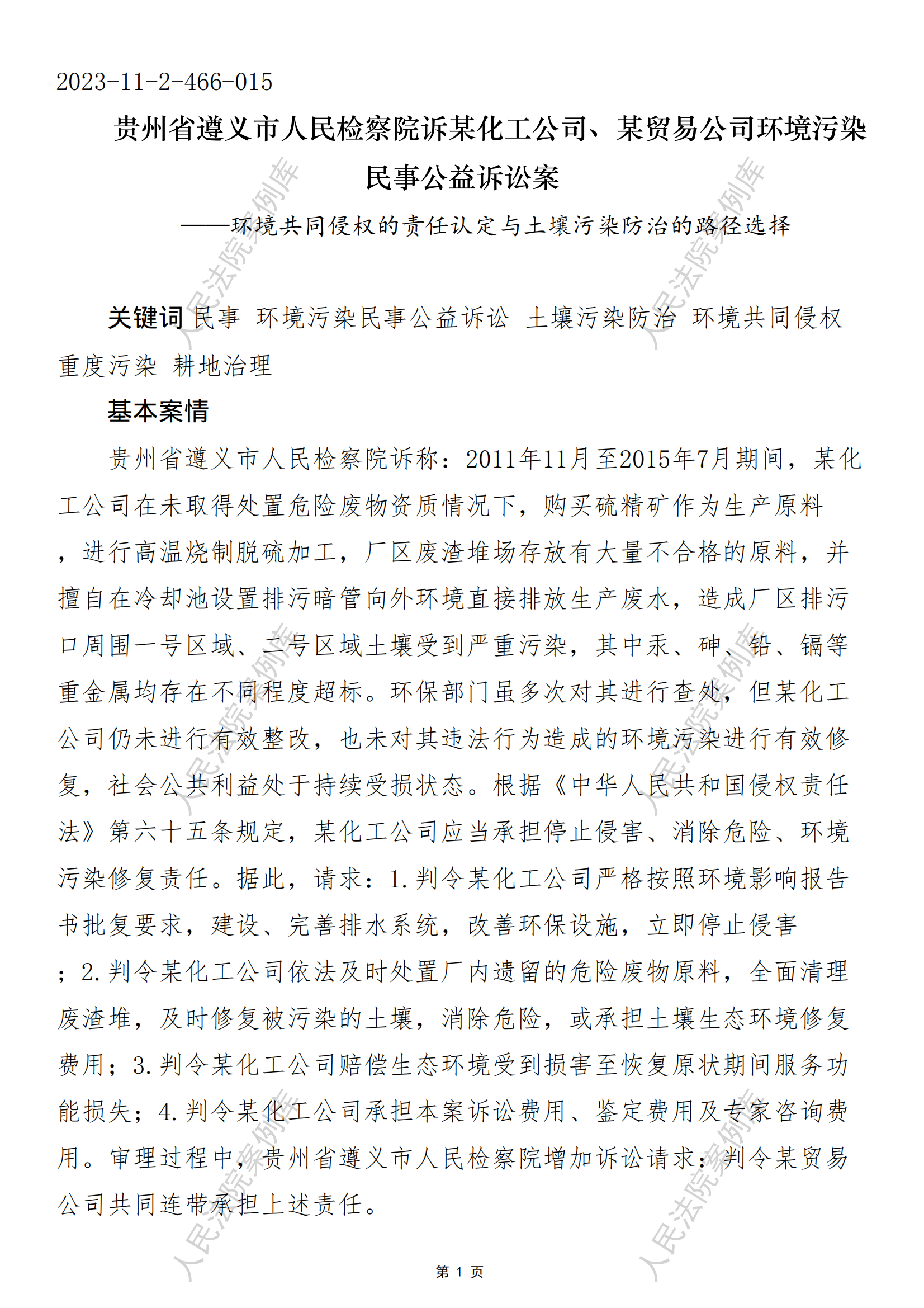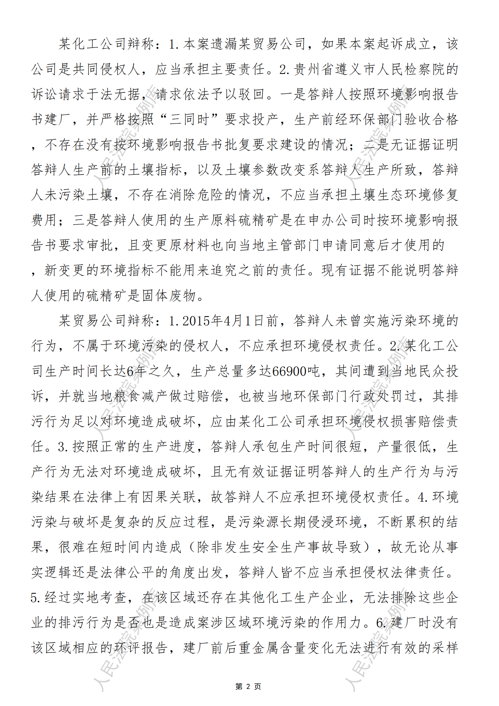 贵州省遵义市人民检察院诉某化工公司、某贸易公司环境污染民事公益诉讼案
