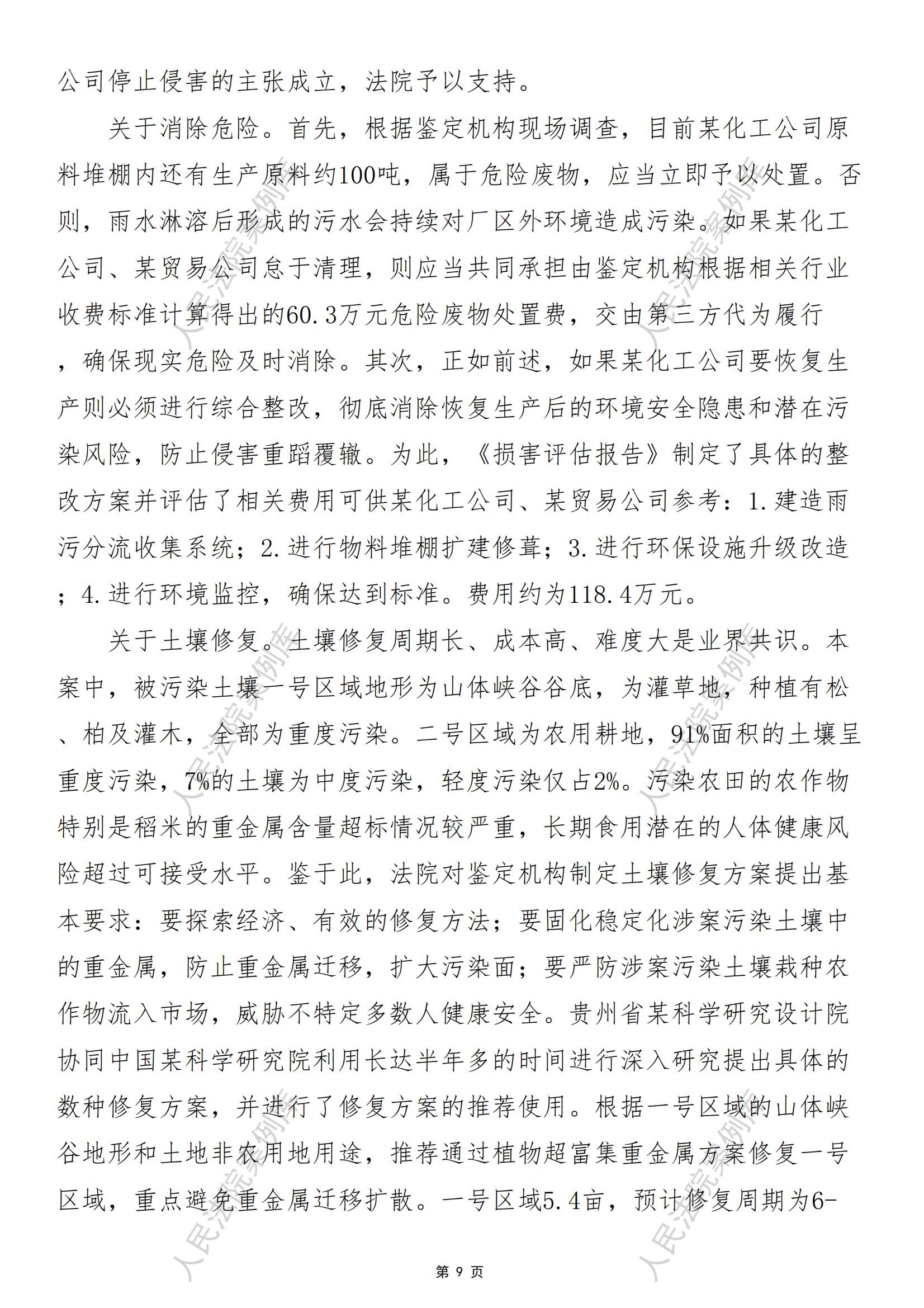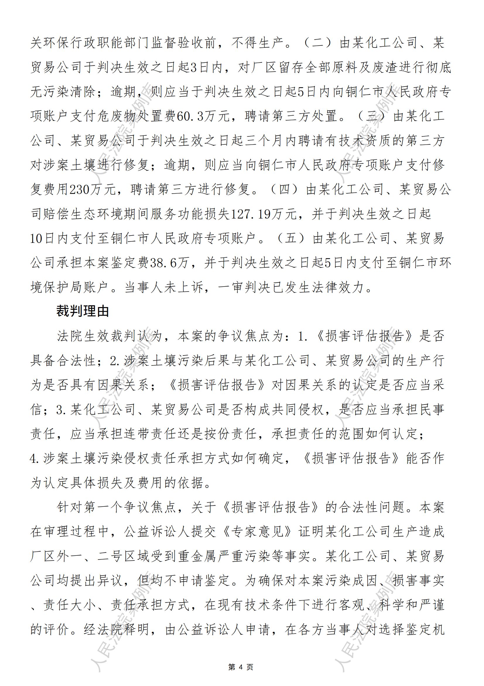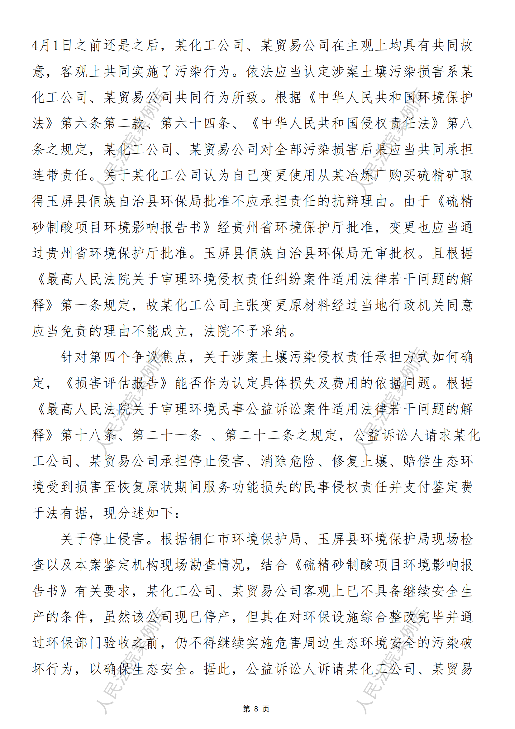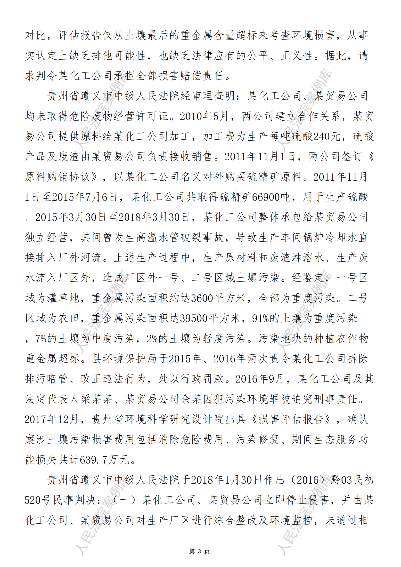 贵州省遵义市人民检察院诉某化工公司、某贸易公司环境污染民事公益诉讼案