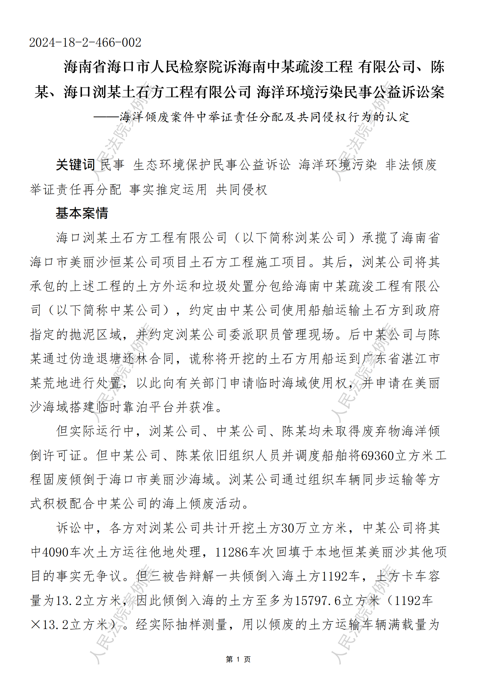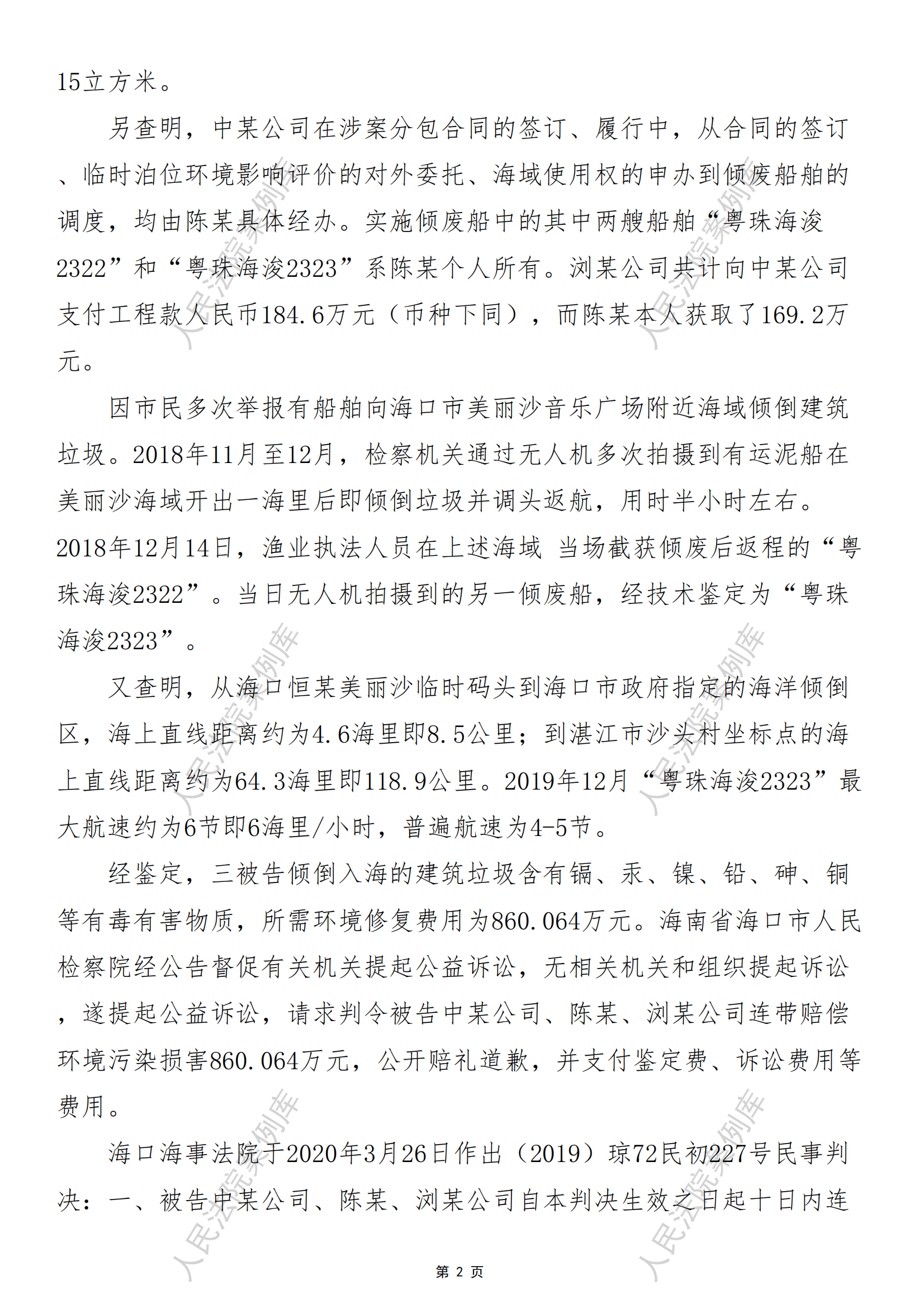 某、海口浏某土石方工程有限公司 海洋环境污染民事公益诉讼案