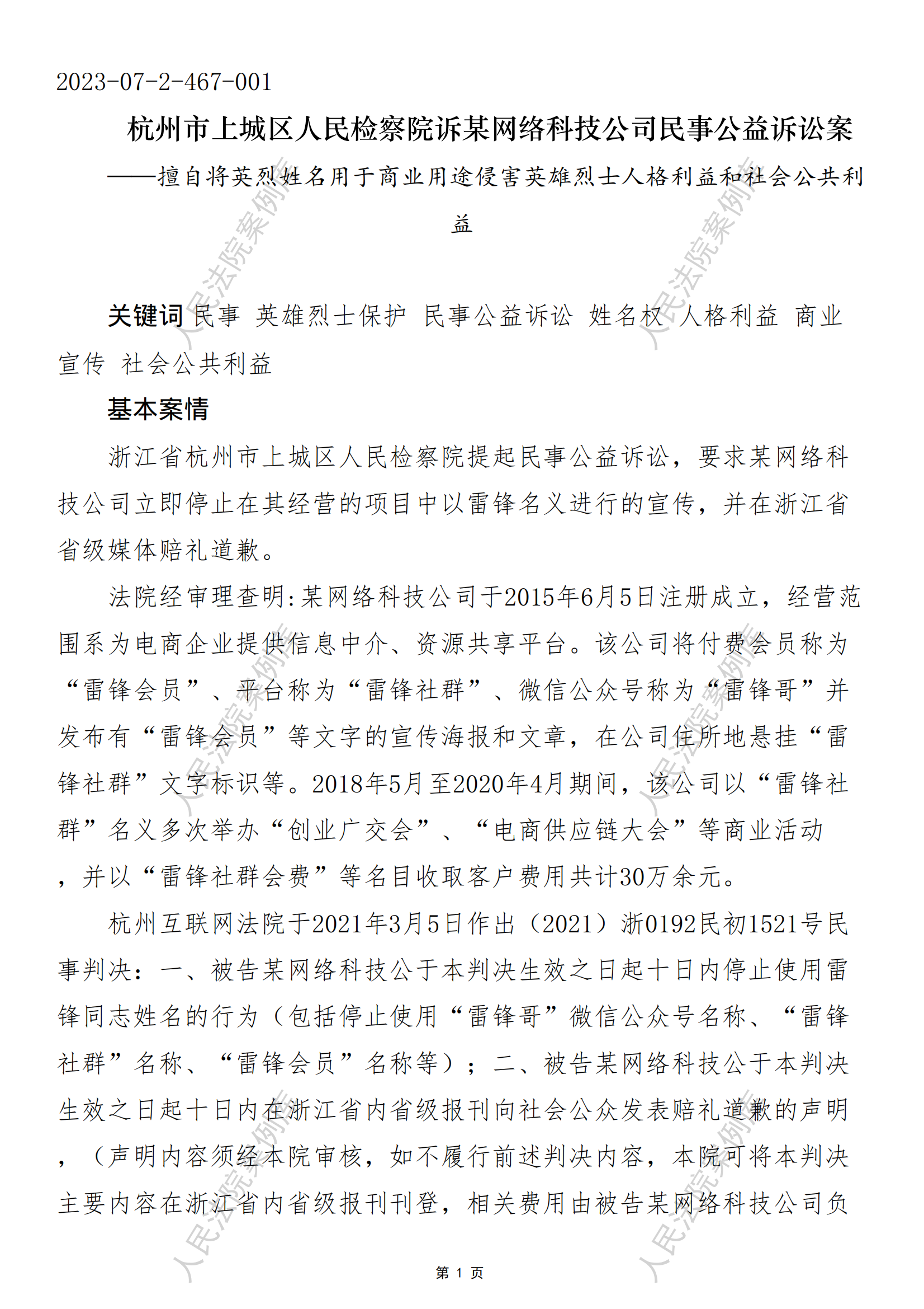 杭州市上城区人民检察院诉某网络科技公司民事公益诉讼案