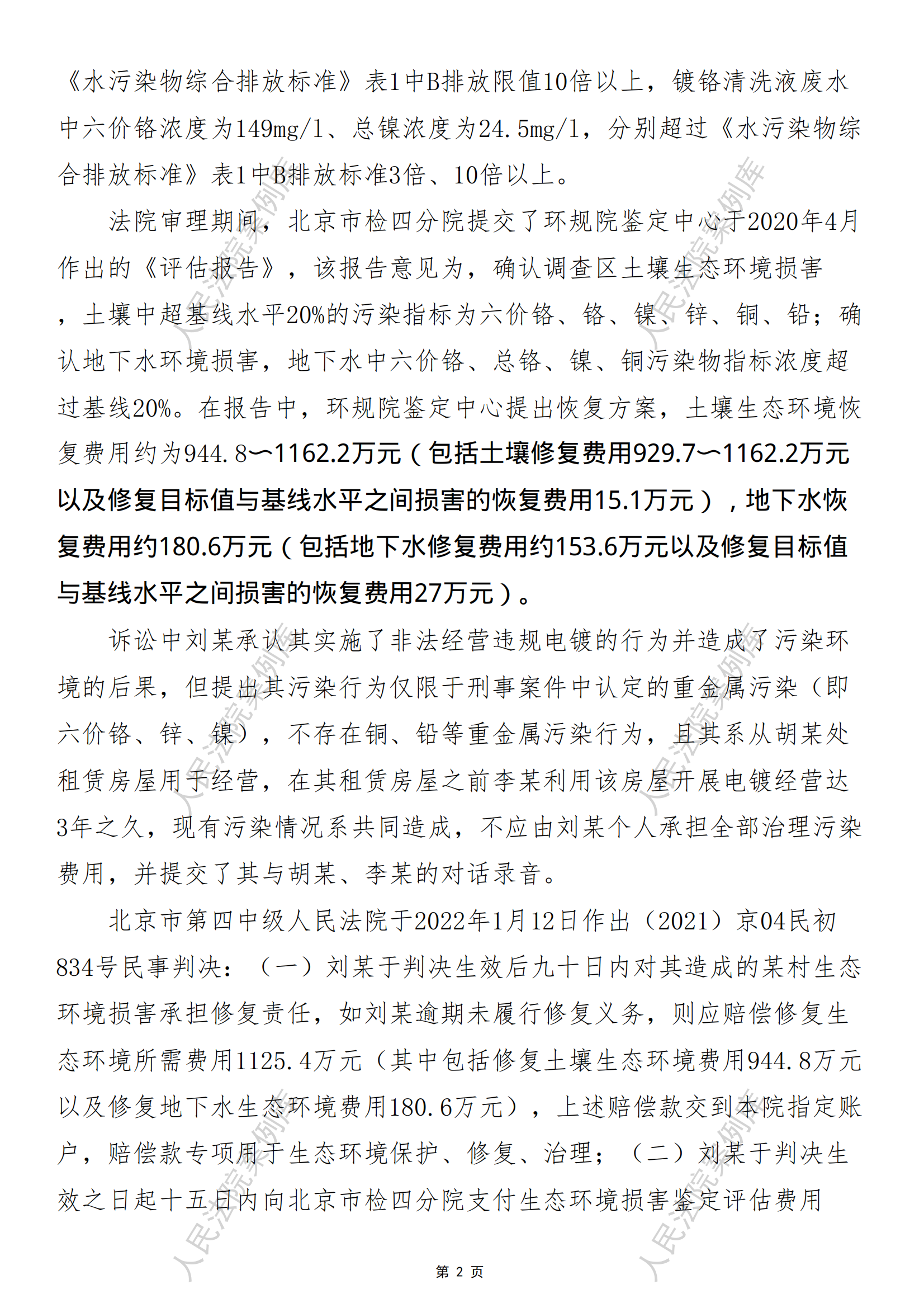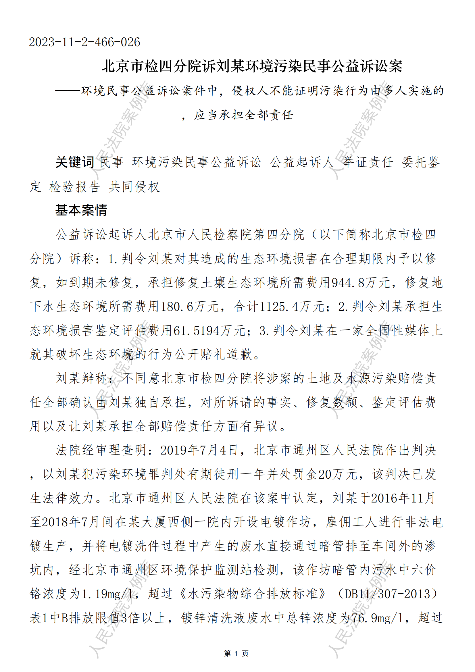 北京市检四分院诉刘某环境污染民事公益诉讼案