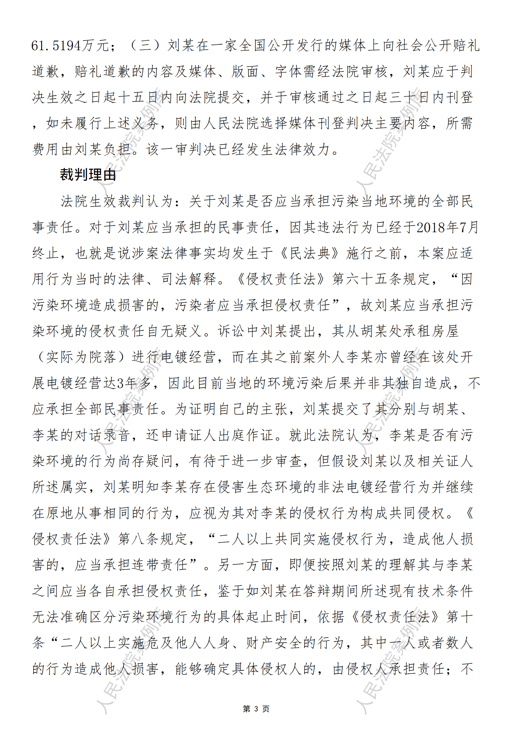 核心提示:——环境民事公益诉讼案件中,侵权人不能证明污染行为由多人实施的,应当承担全部责任