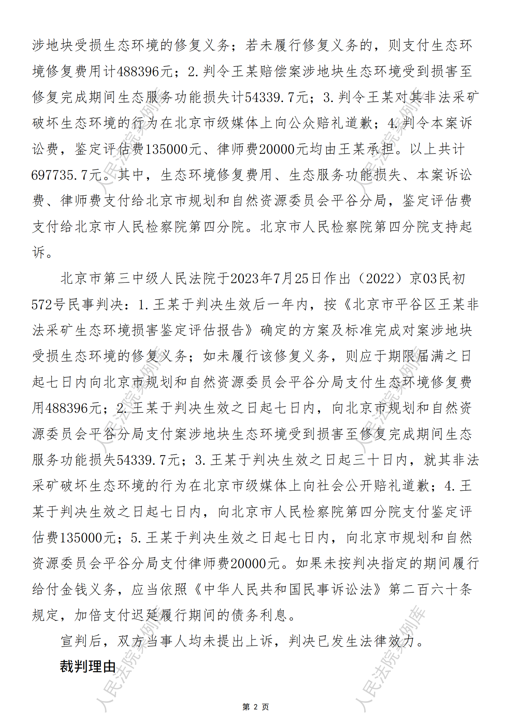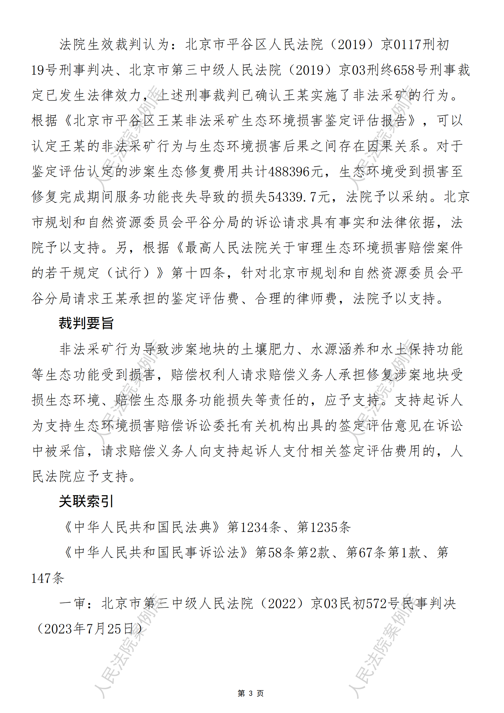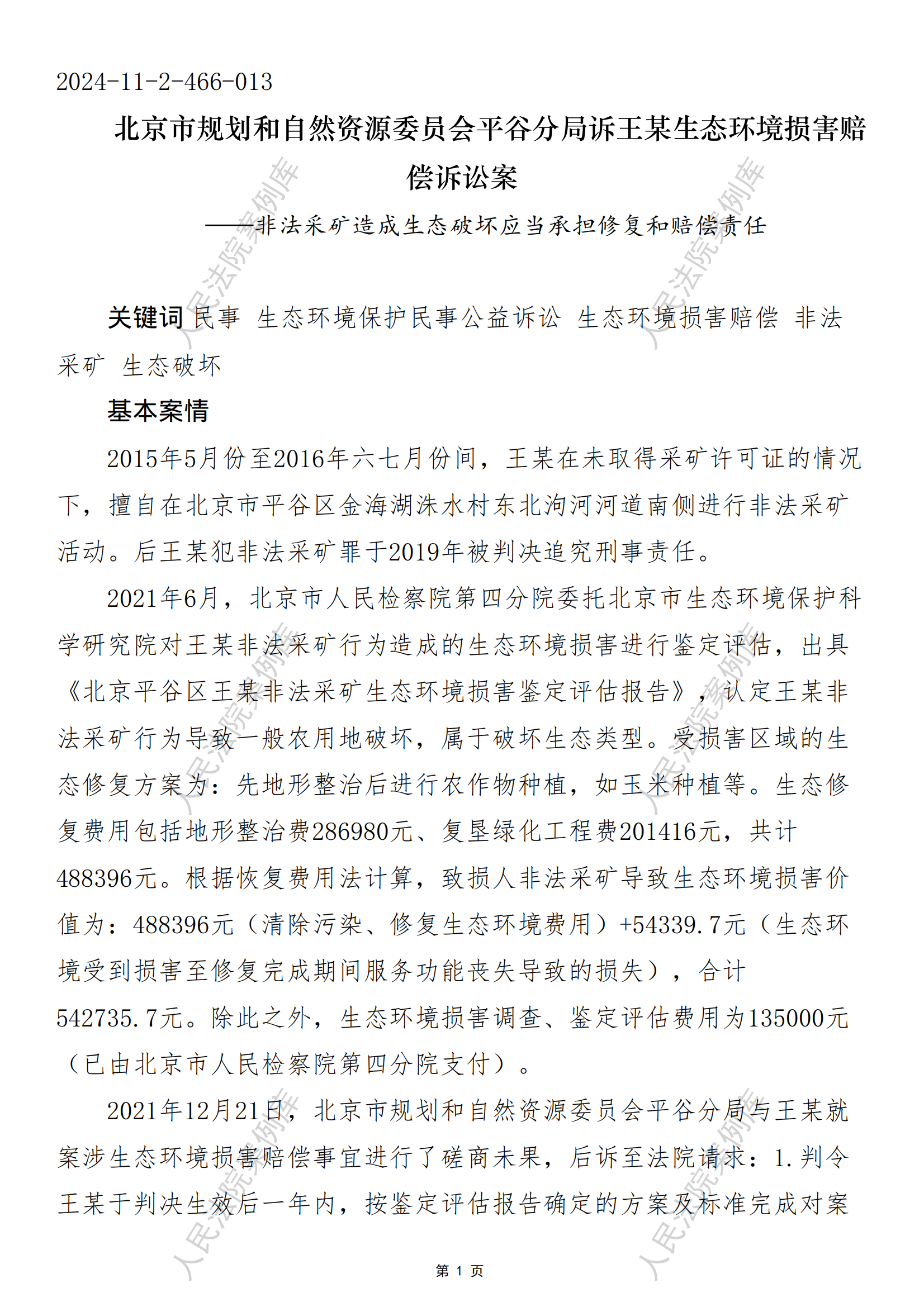 北京市规划和自然资源委员会平谷分局诉王某生态环境损害赔