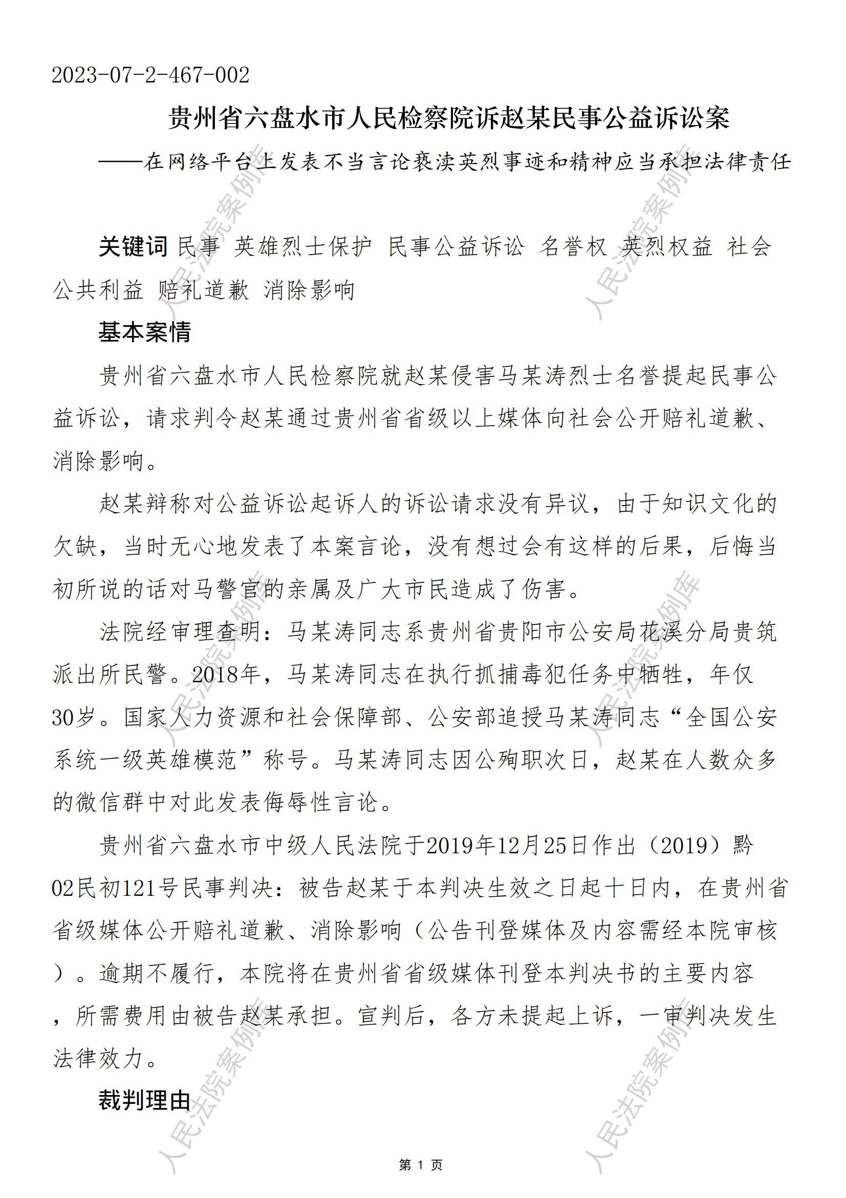 贵州省六盘水市人民检察院诉赵某民事公益诉讼案