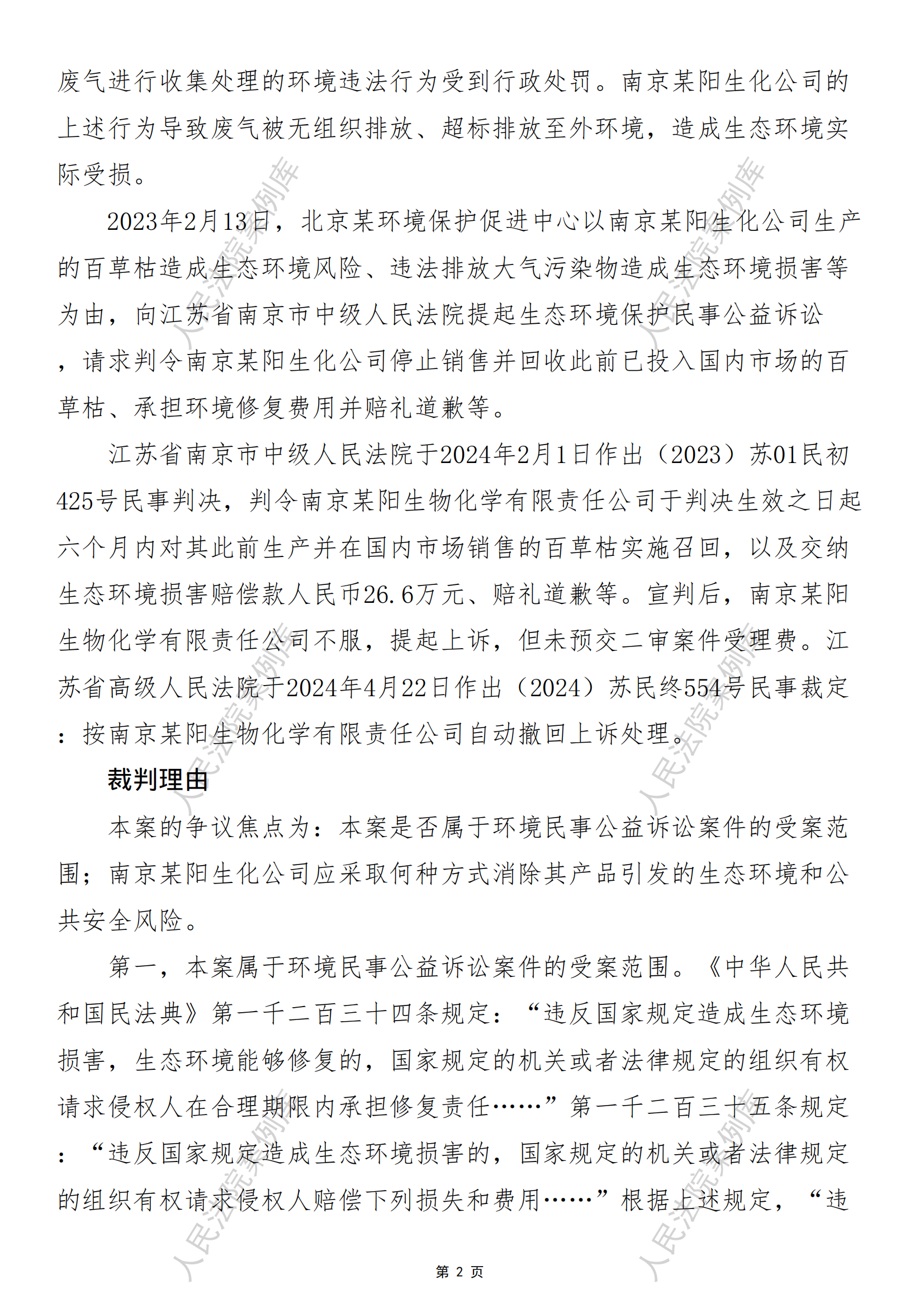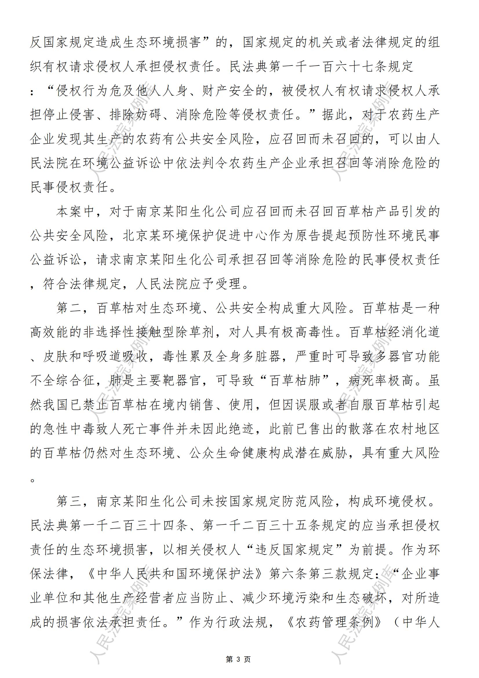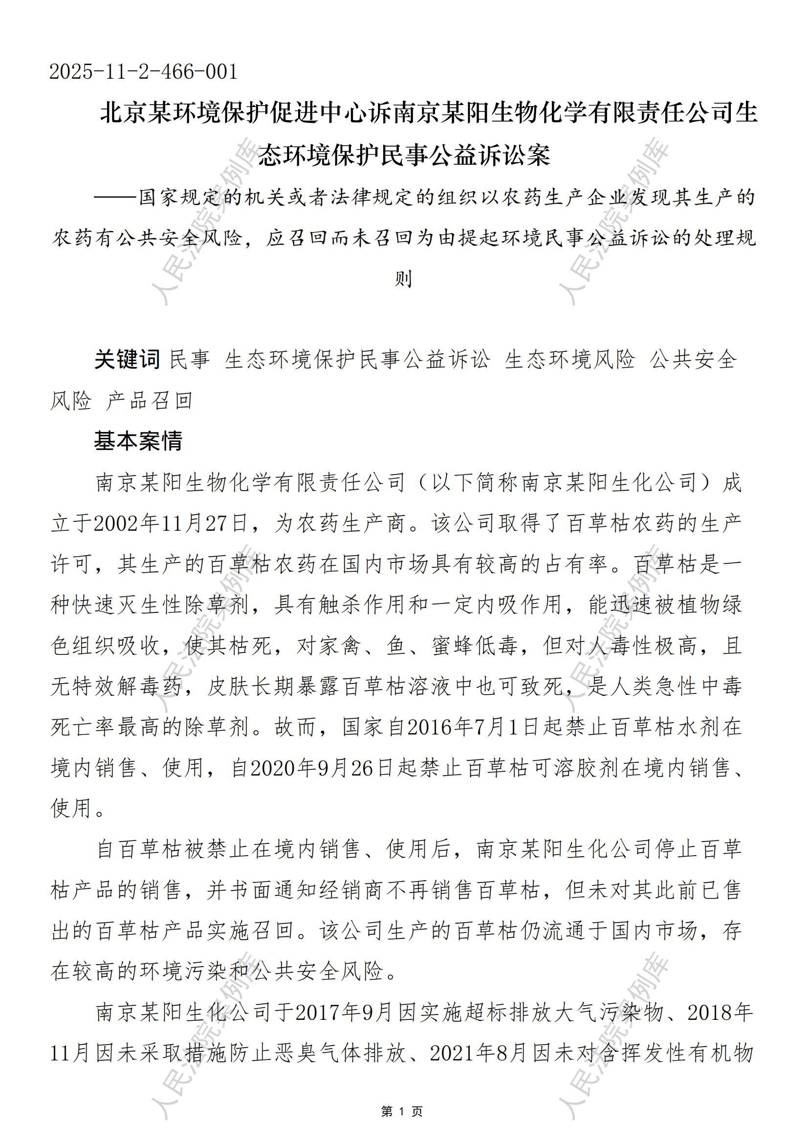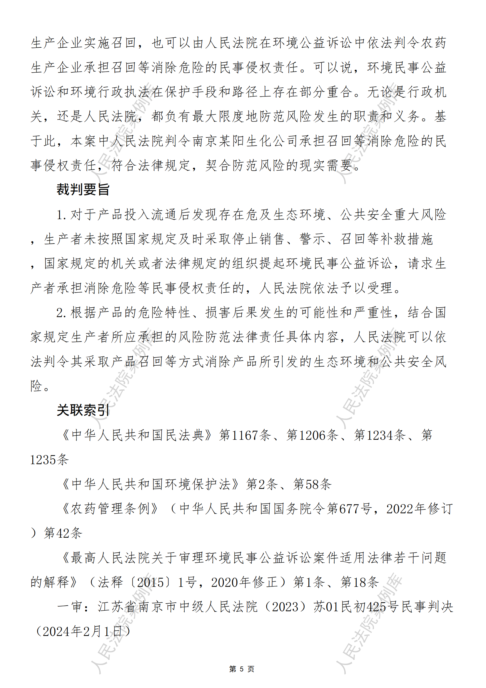 核心提示:——国家规定的机关或者法律规定的组织以农药生产企业发现其生产的农药有公共安全风险,应召回而未召回为由提起环境民事公益诉讼的处理规则