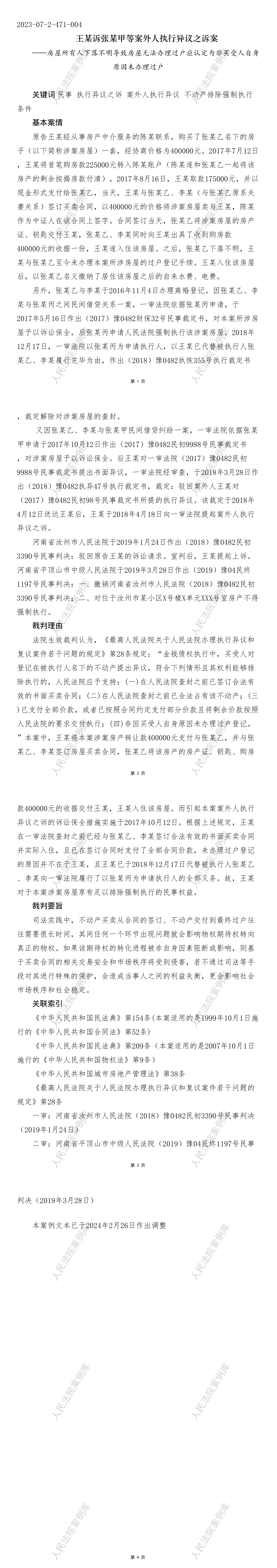王某诉张某甲等案外人执行异议之诉案