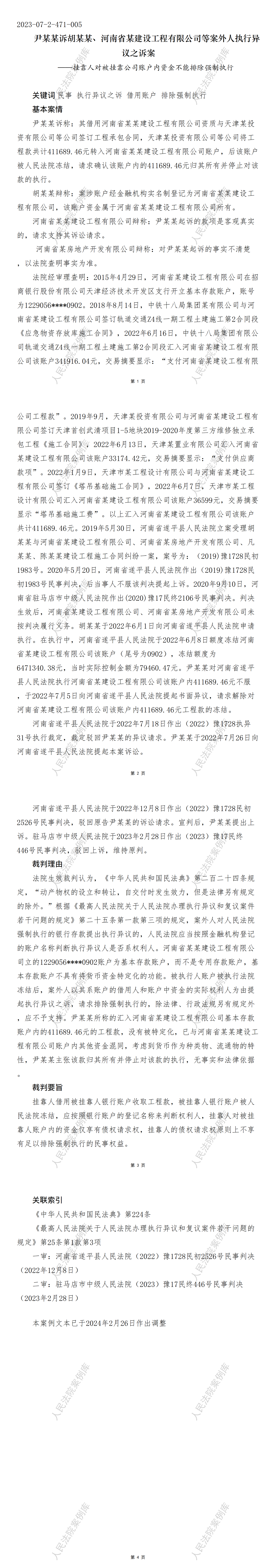 尹某某诉胡某某、河南省某建设工程有限公司等案外人执行