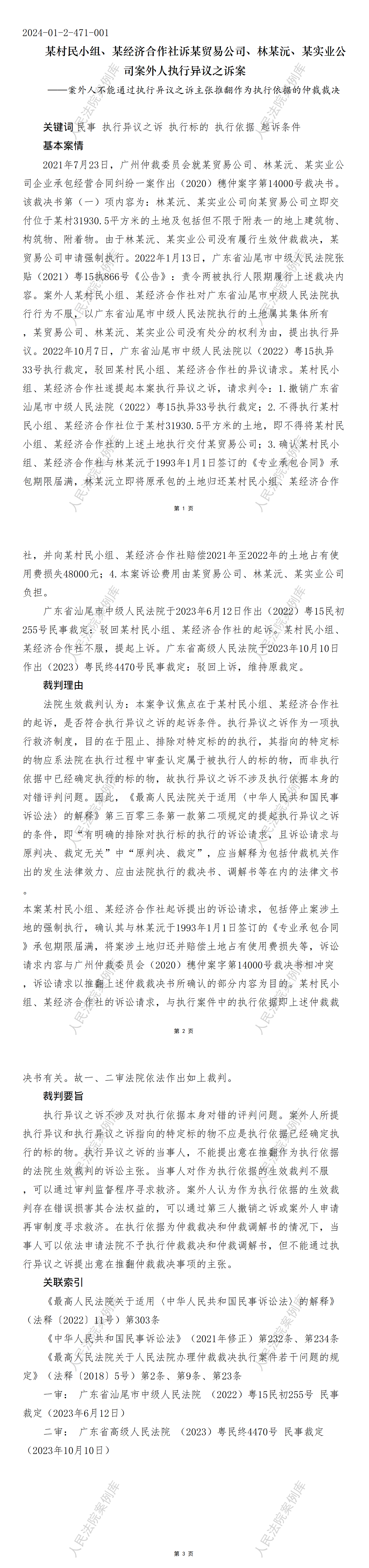 某村民小组、某经济合作社诉某贸易公司、林某沅、某实业公司案外人执行异议之诉案