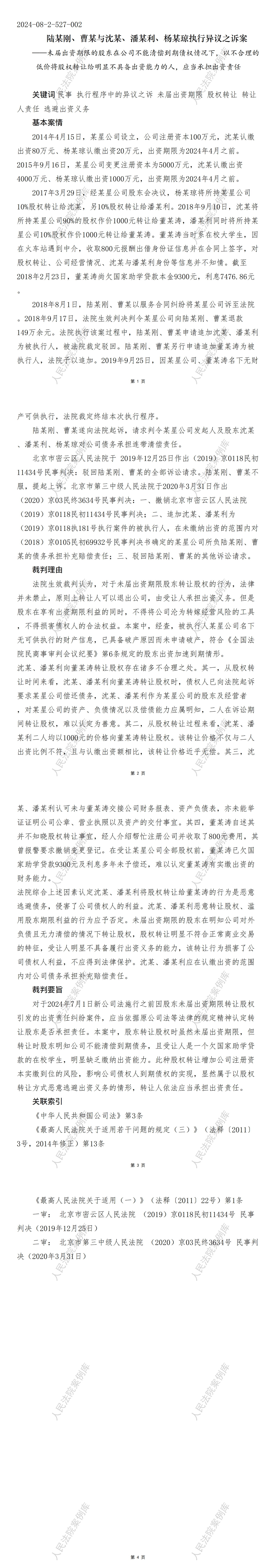 陆某刚、曹某与沈某、潘某利、杨某琼执行异议之诉案
