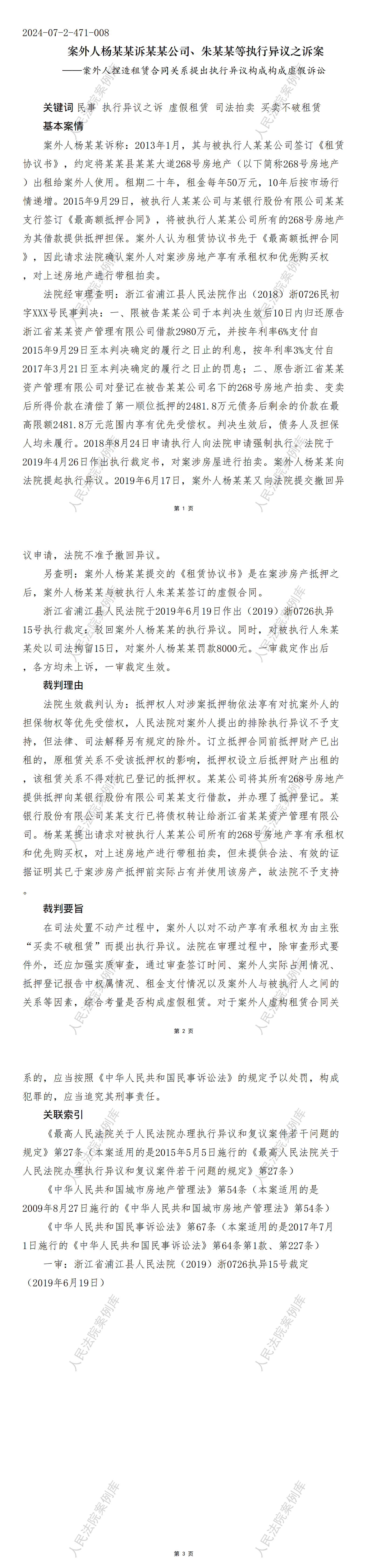 核心提示:——案外人捏造租赁合同关系提出执行异议构成构成虚假诉讼
