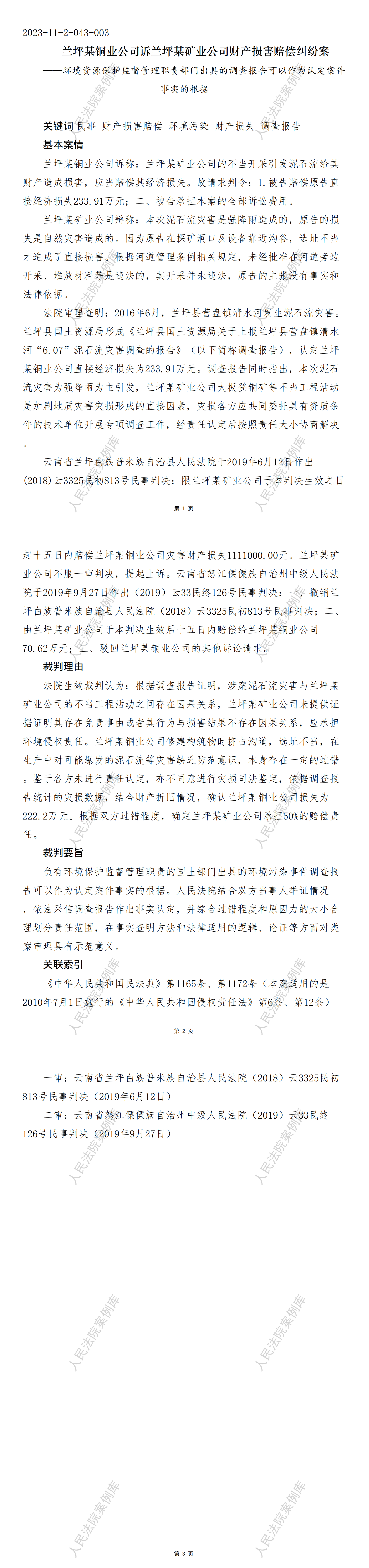 兰坪某铜业公司诉兰坪某矿业公司财产损害赔偿纠纷案