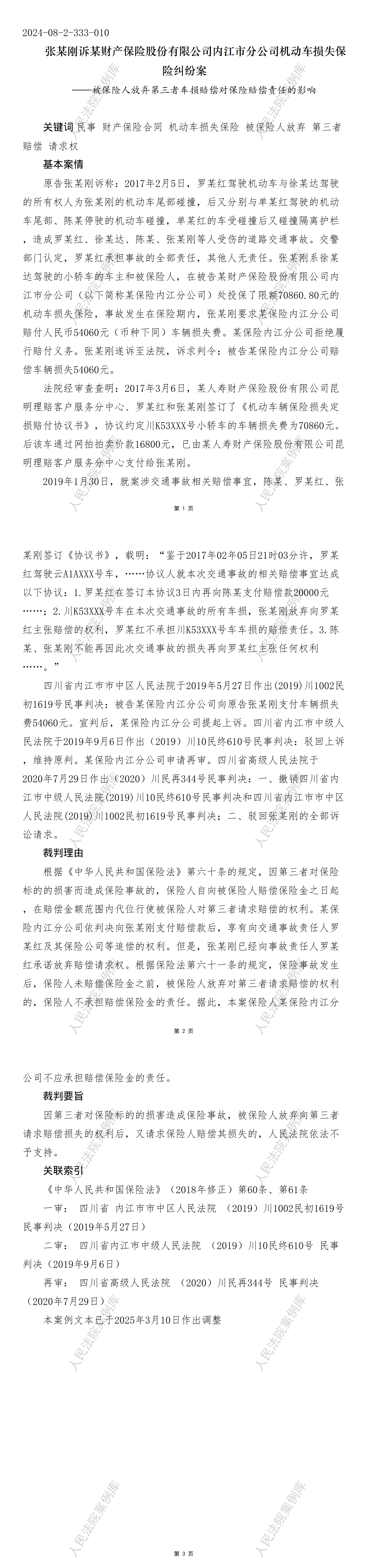 张某刚诉某财产保险股份有限公司内江市分公司机动车损失保