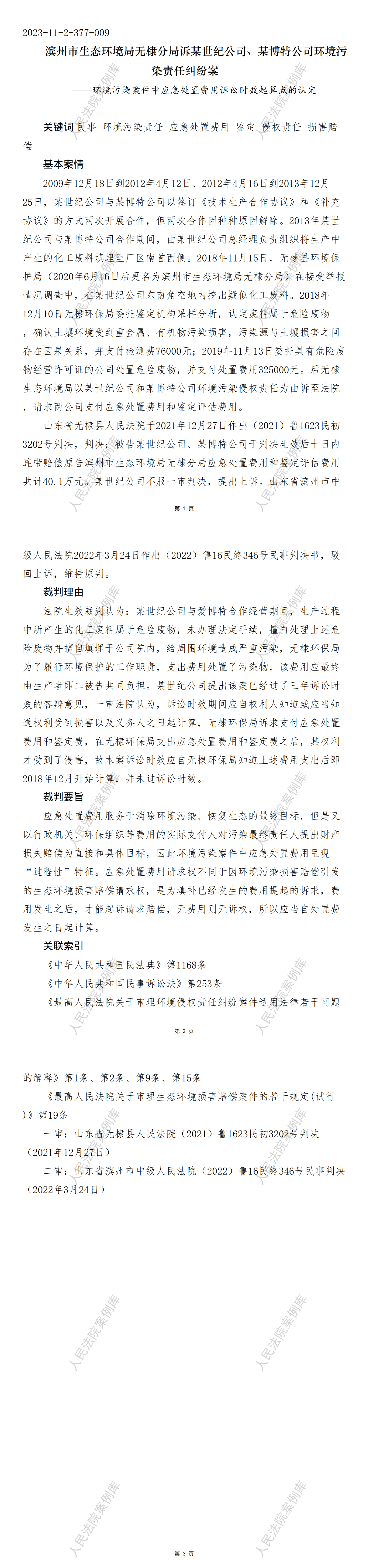 滨州市生态环境局无棣分局诉某世纪公司、某博特公司环境污染责任纠纷案