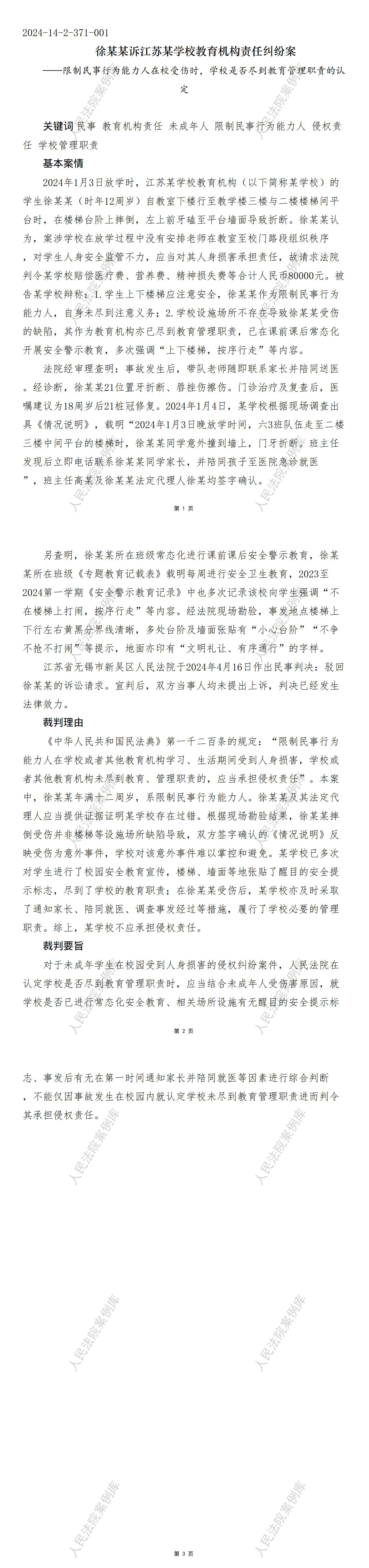 徐某某诉江苏某学校教育机构责任纠纷案