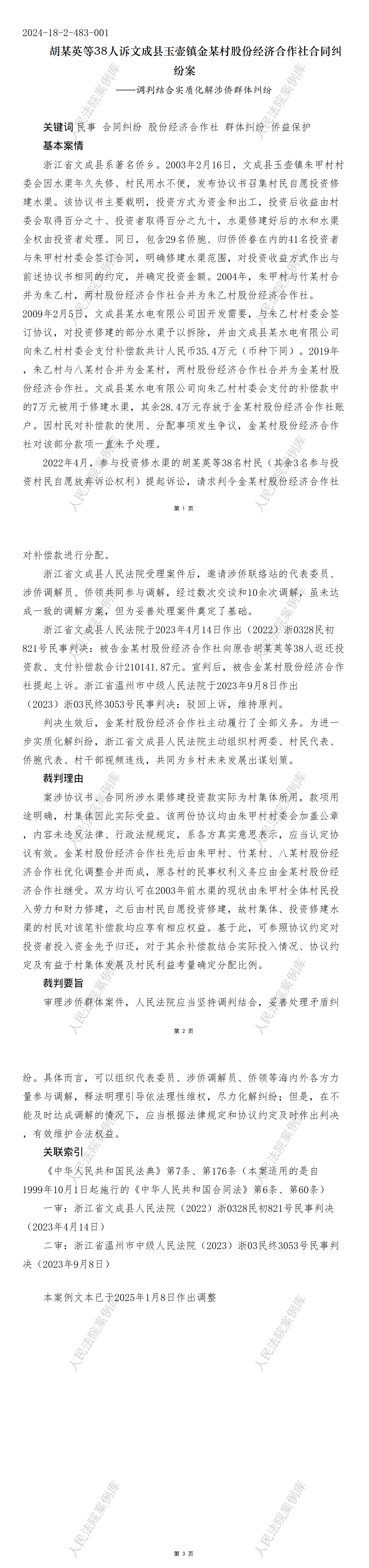 胡某英等38人诉文成县玉壶镇金某村股份经济合作社合同纠纷案